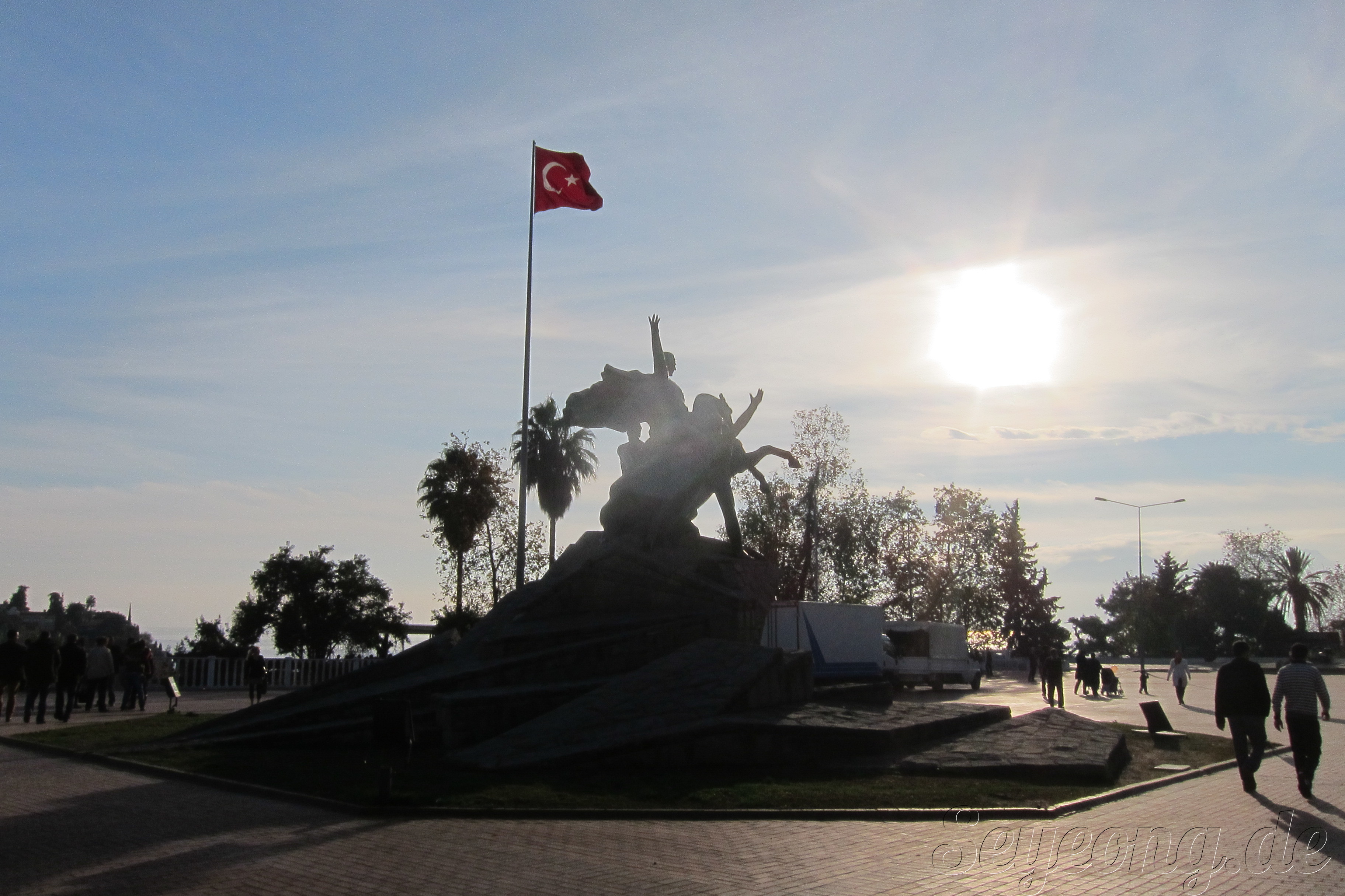 터키 깃발이 날리고, 예전에 번성했던 터키를 알려주려고 하는 듯 동상이 서있다.