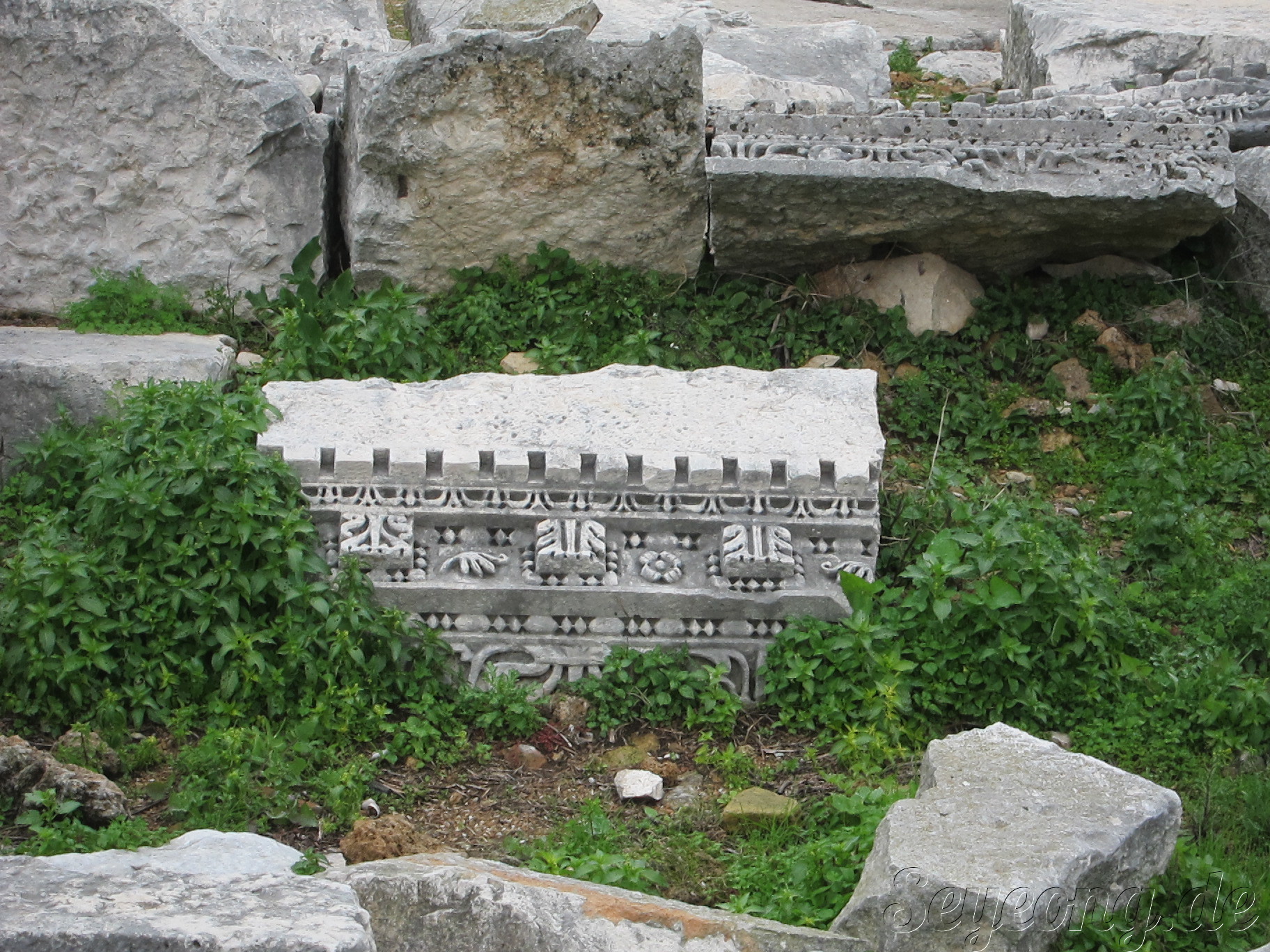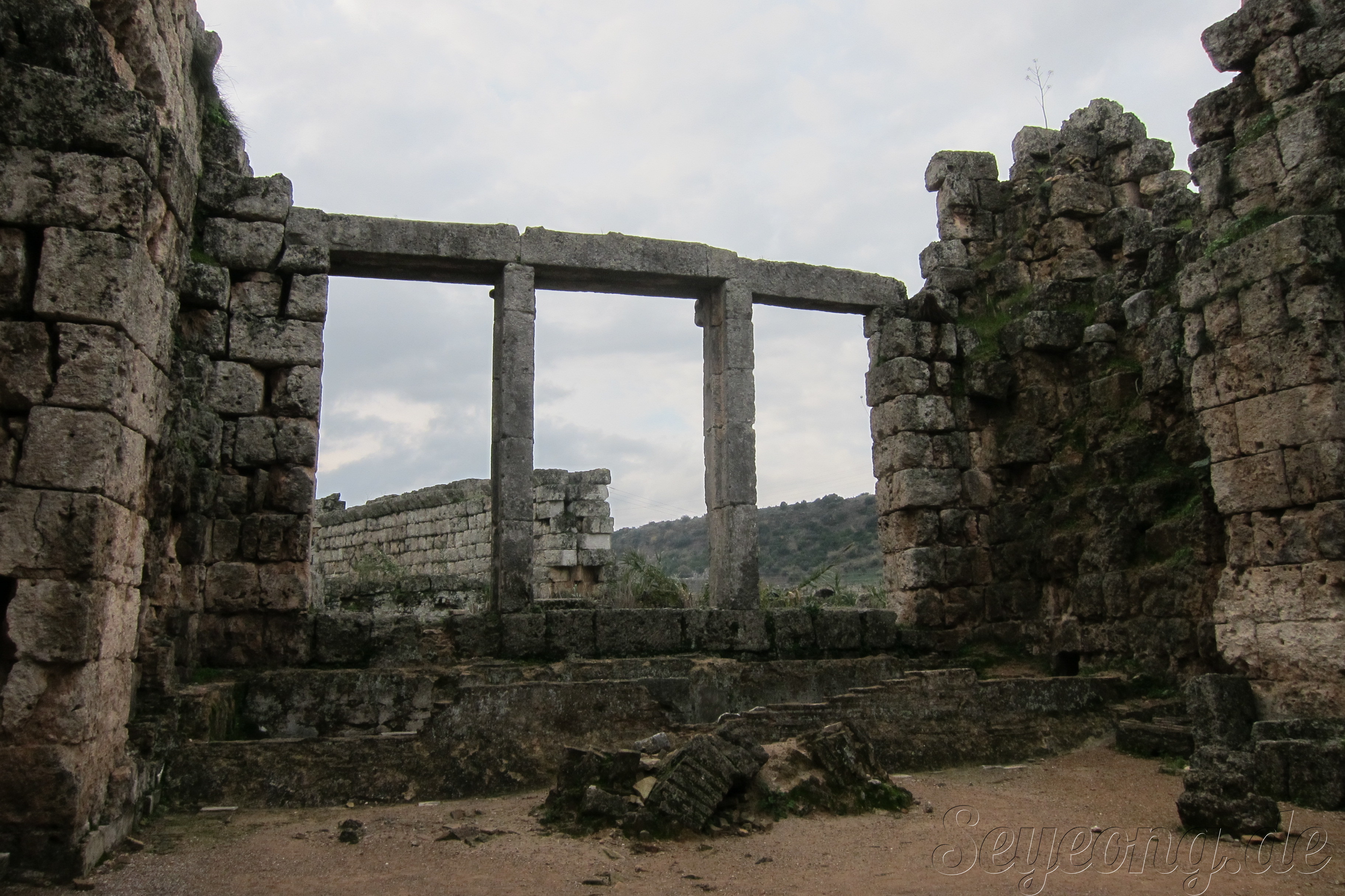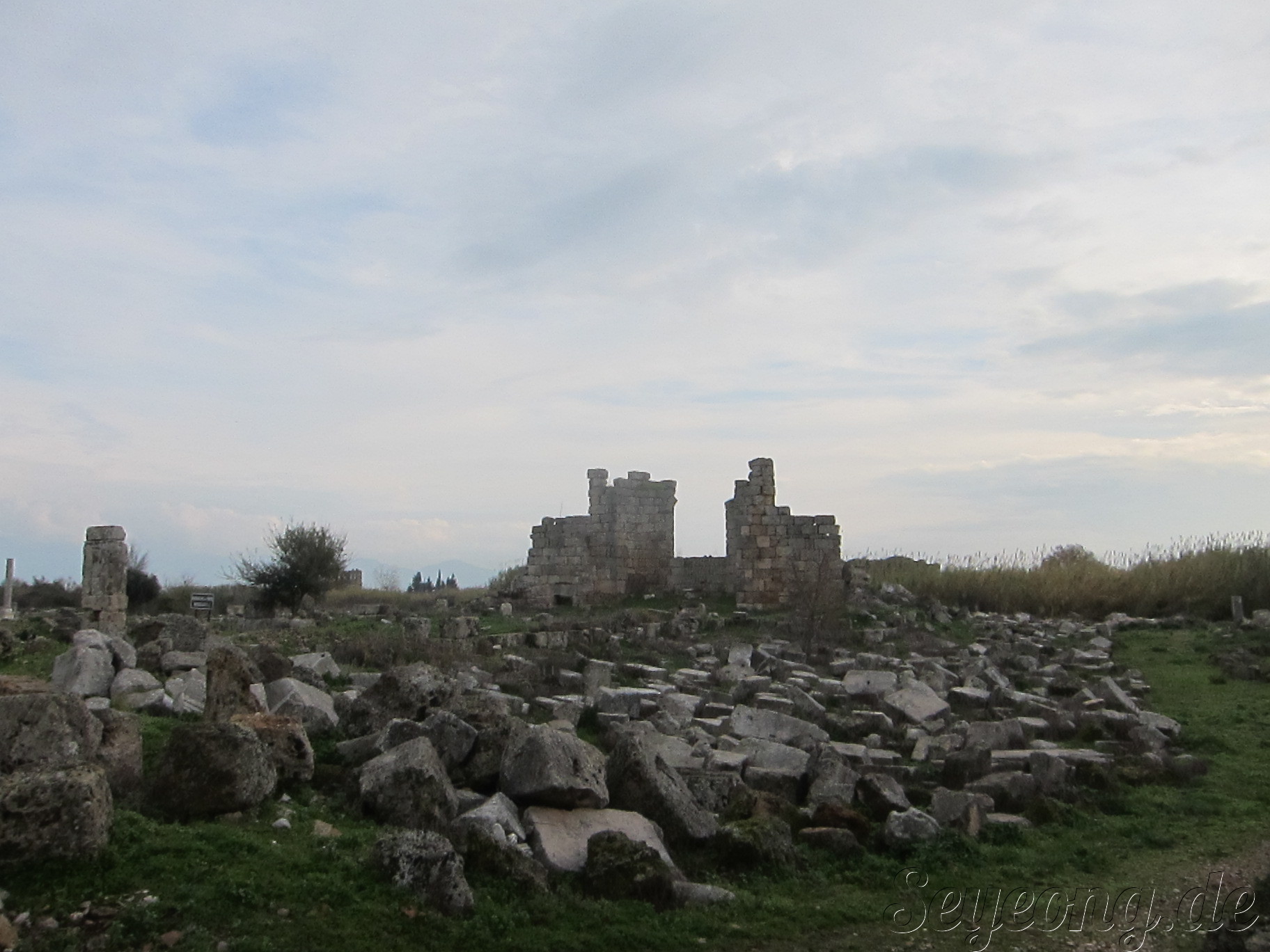 하얀 대리석으로 만든 신전의 흔적이 남아있다.