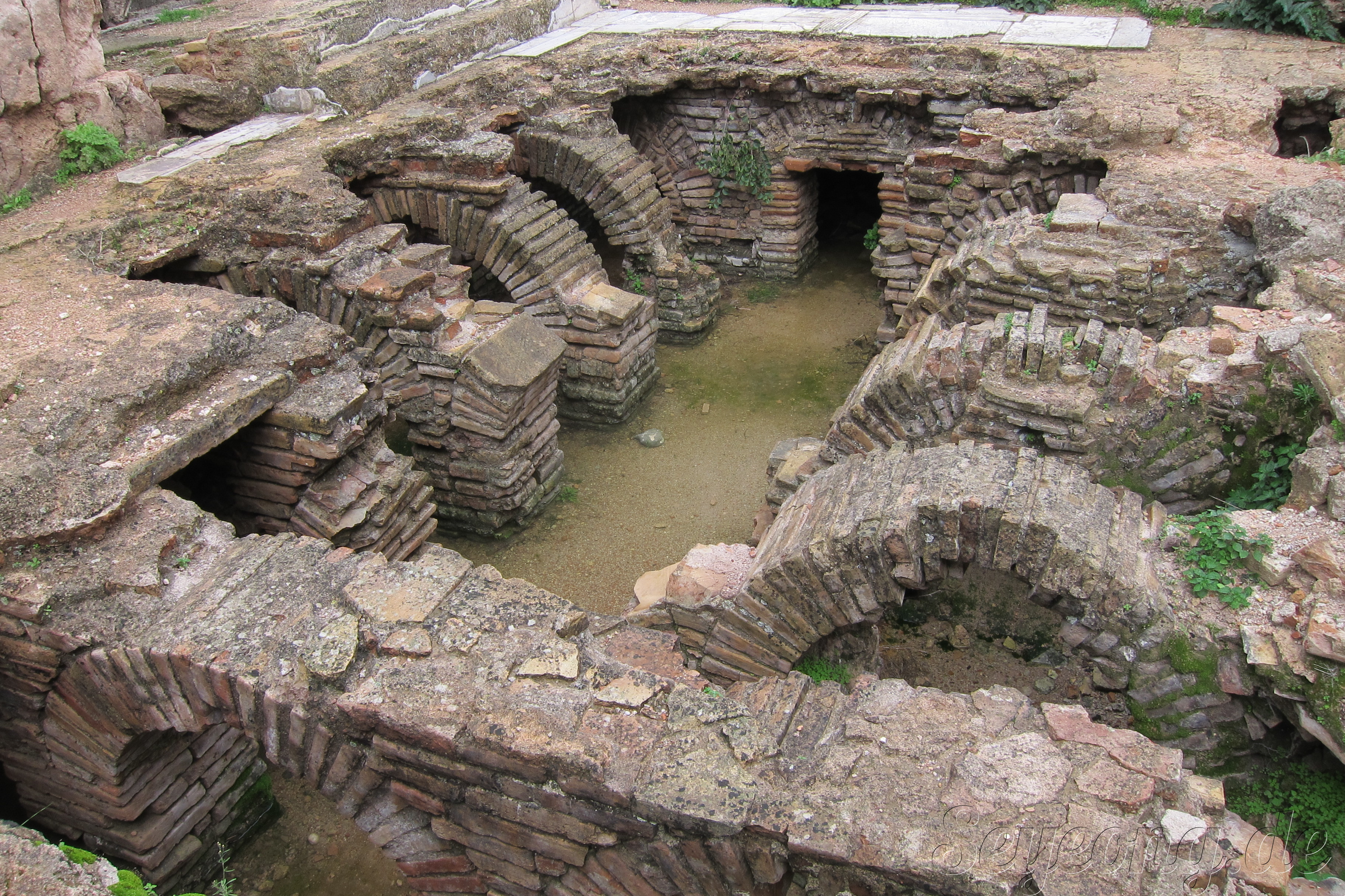 물이 흐르고, 그 물을 정화해서 쓰기 위해 만든 시설. 뜨거운 물을 만들기 위해 물을 데우는 시설도 있었다고.