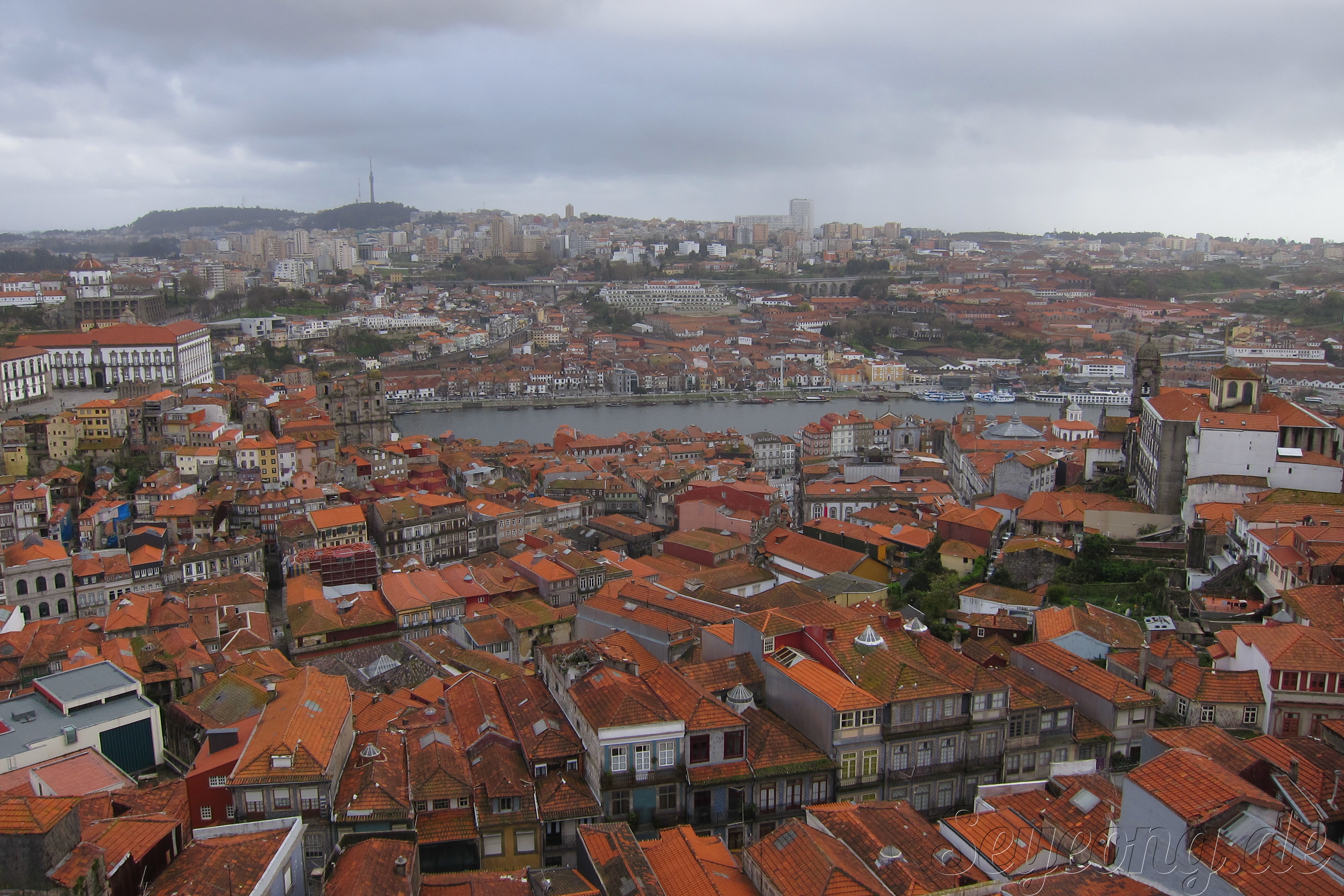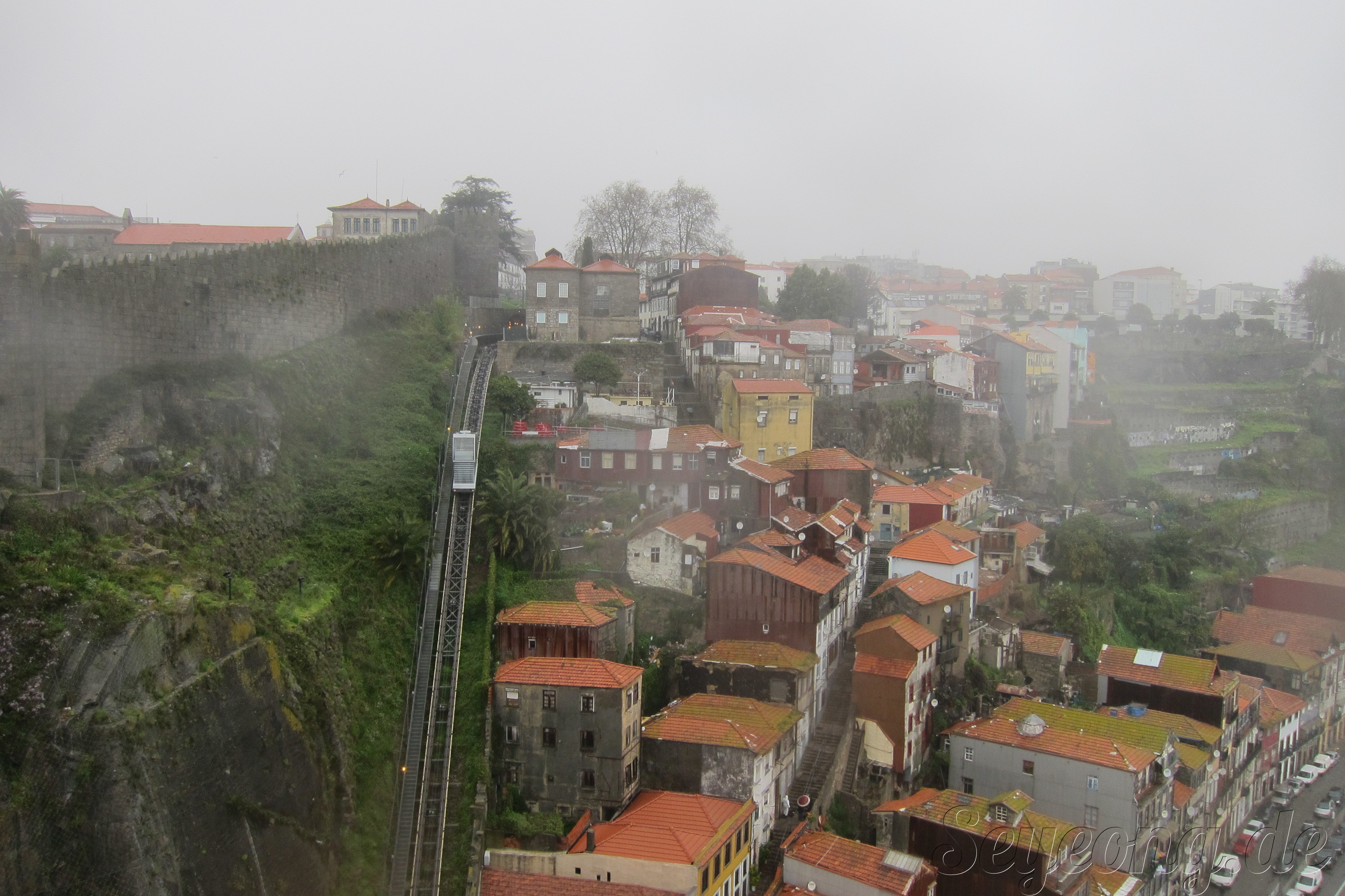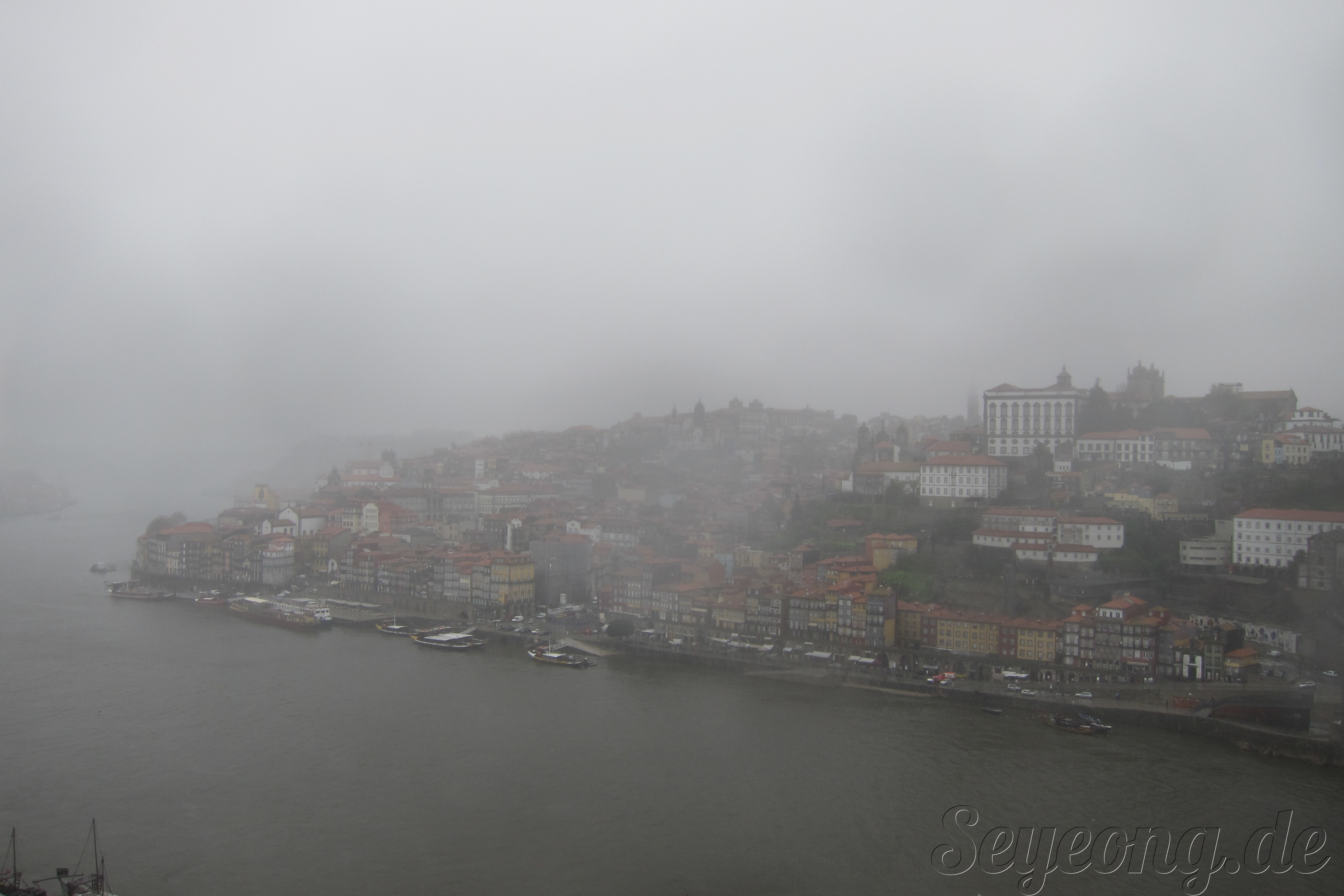 비가 와서 안개낀 포르또 전경.