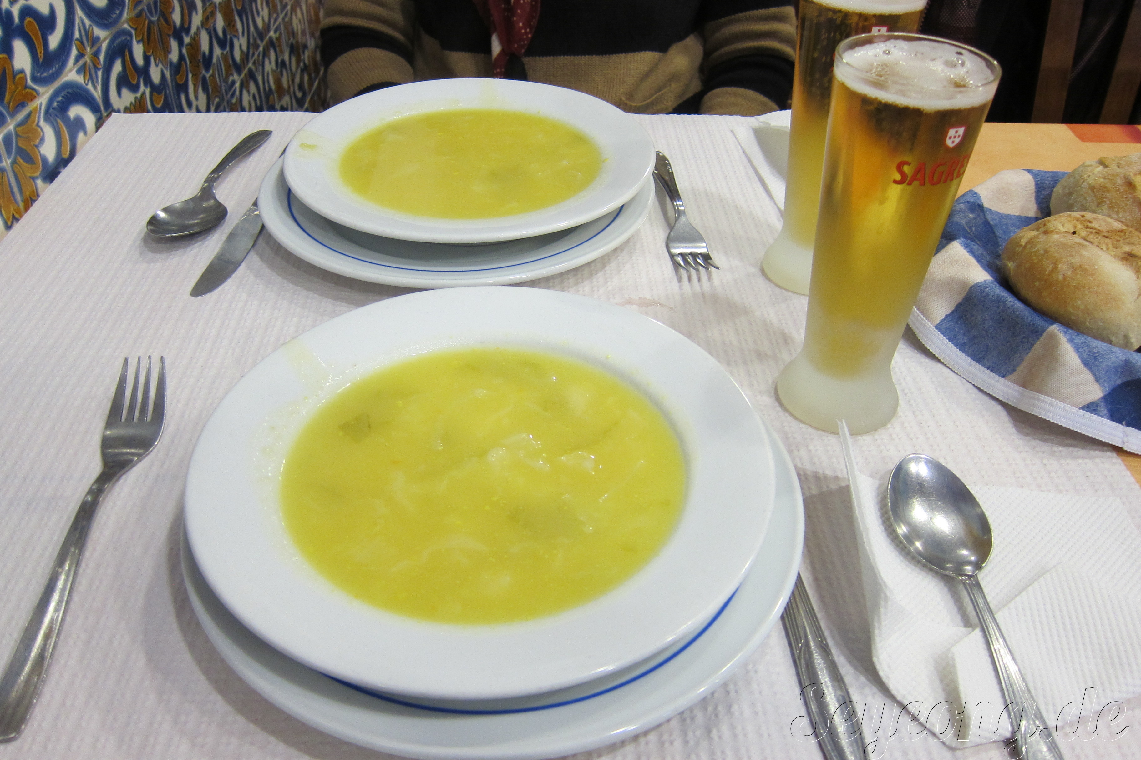 그리고 빠질 수 없는 포루투갈의 야채 스프. 건강도 건강이지만 양배추와 여러가지 야채가 들어 있고, 어느 음식점 마다 다양하게 요리한다.