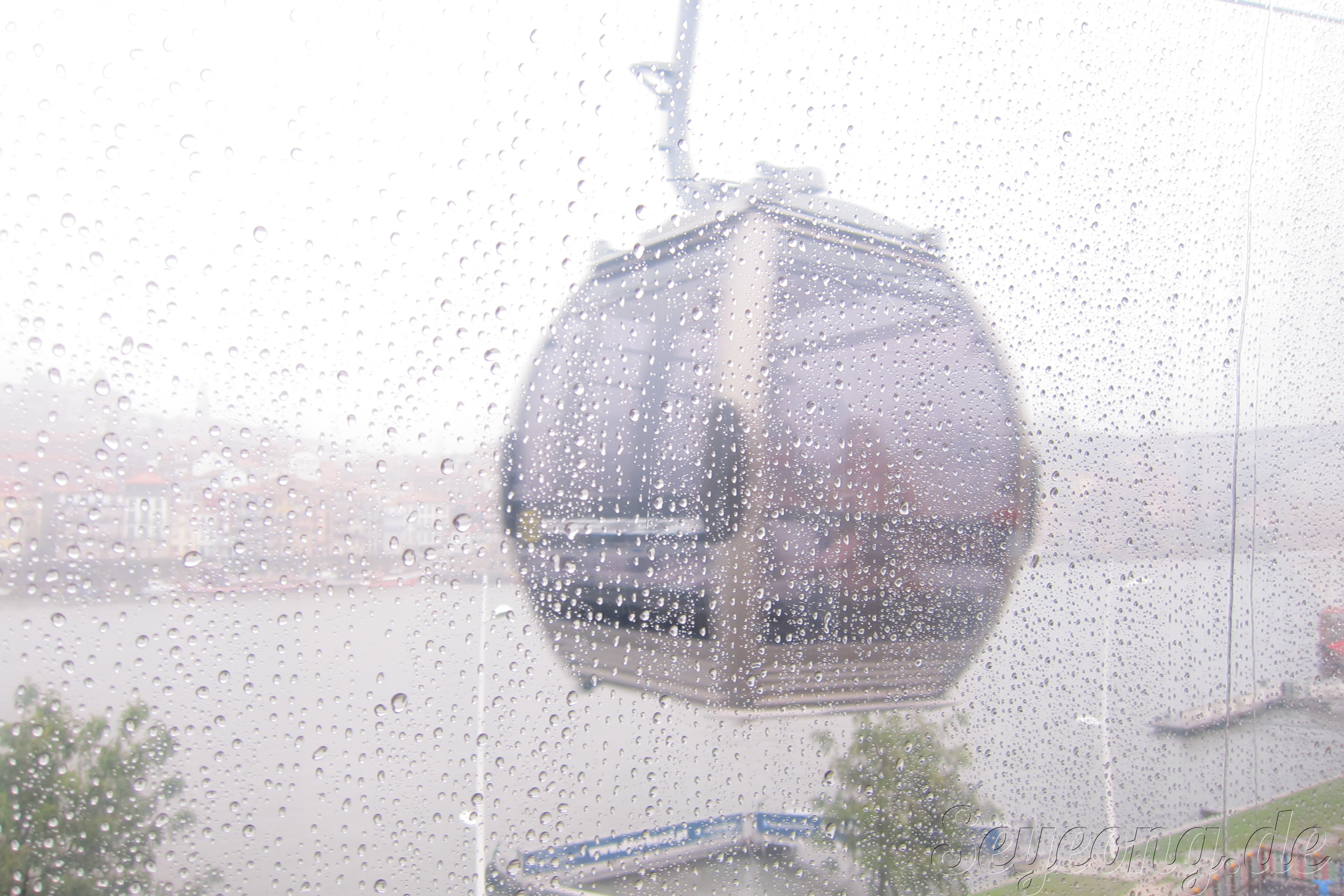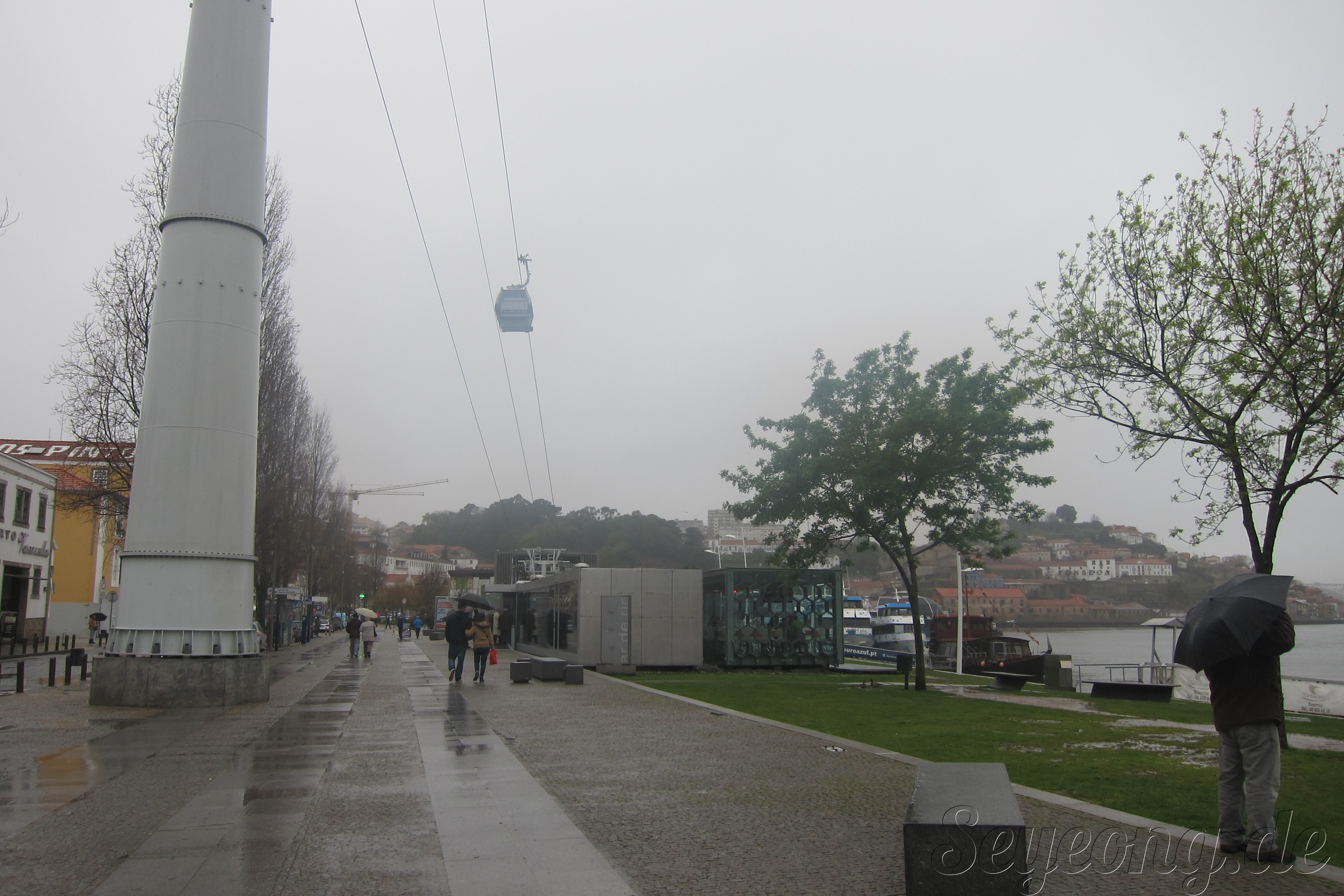 이 높은 언덕진 포르또의 지형을 연결해주는 케이블 카가 있다. 사원까지 올라가고, 또 다리 위의 또 다른 도보 길을 연결하는. 갑자기 비는 오고.