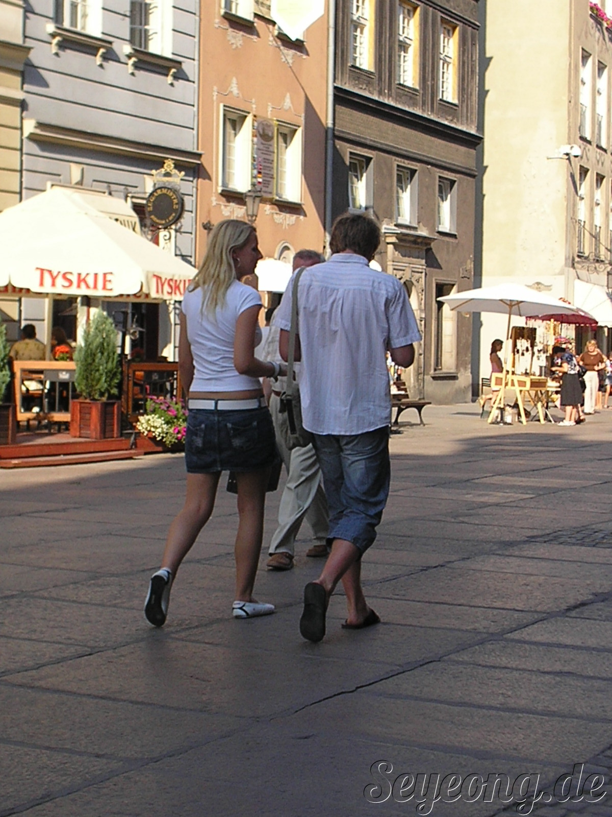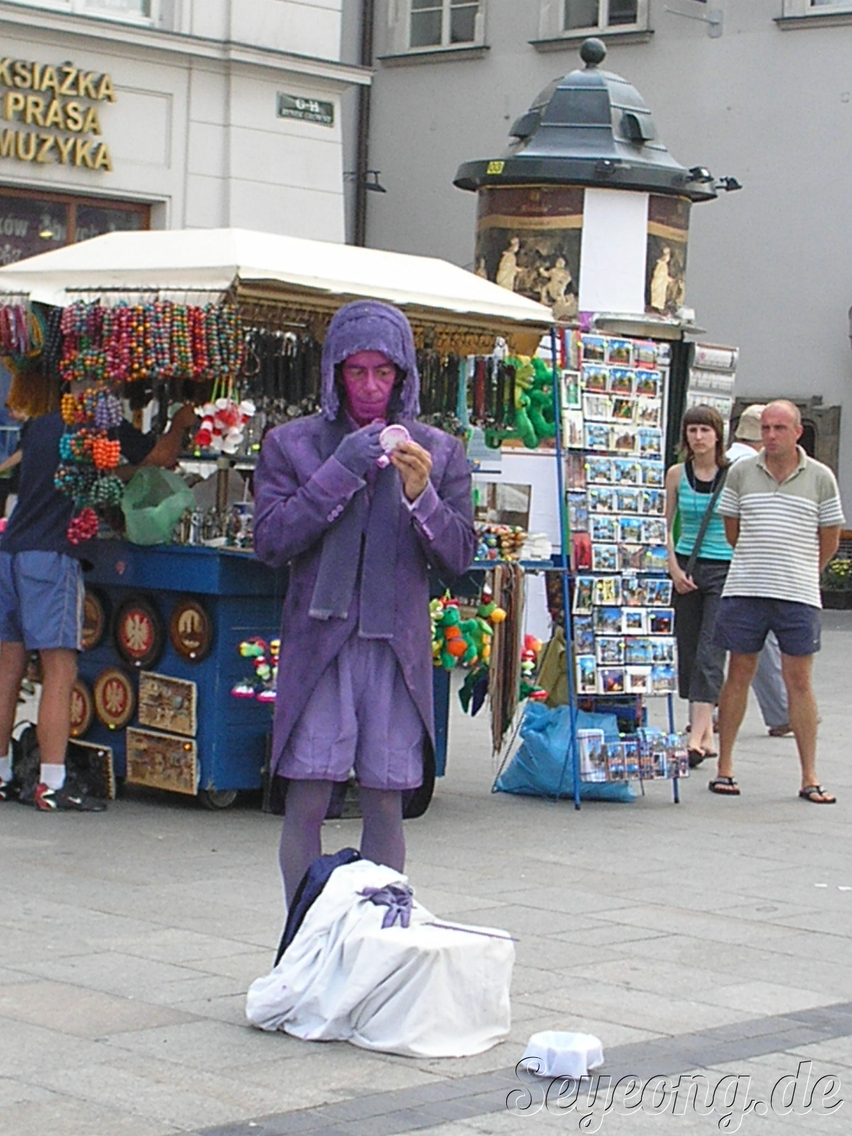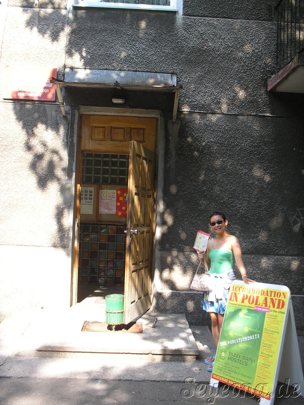 갑자기 민트색 옷입은 아저씨가 우리에게 다가오고 우리 뒤로 자기 명함을 꺼내면서, 폴란드 말로 중얼중얼 거린다.