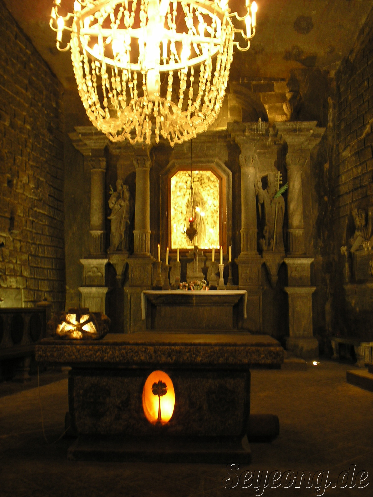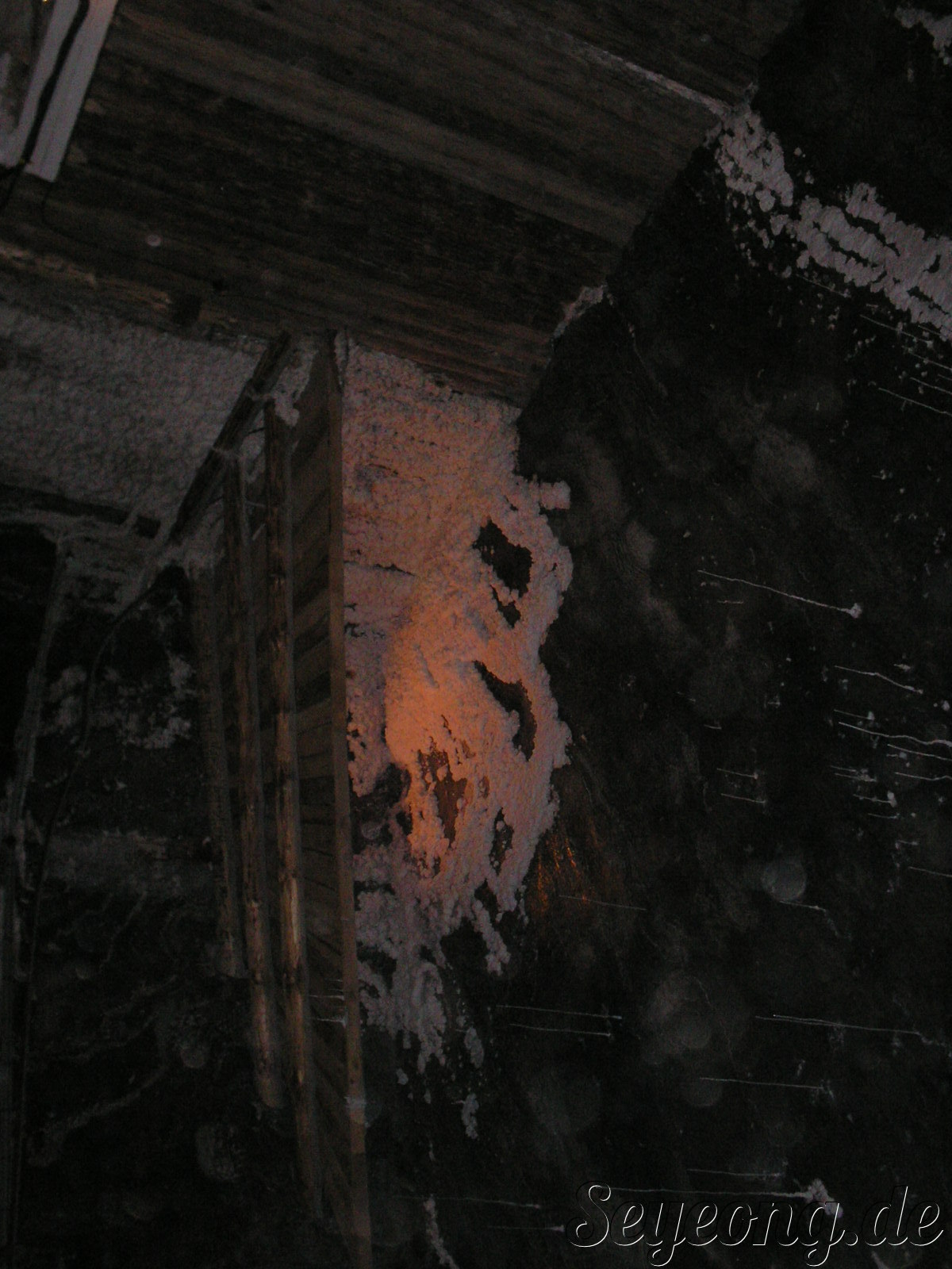 소금 광산 안의 암흑속의 엘레베이터를 타고 지하 깊숙히 들어가니..