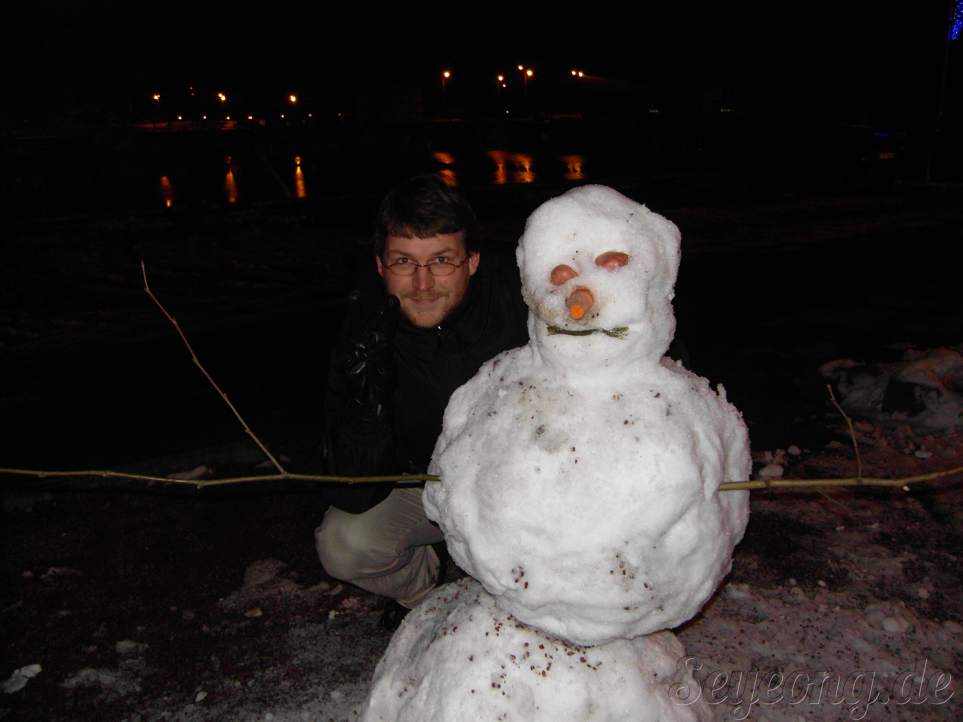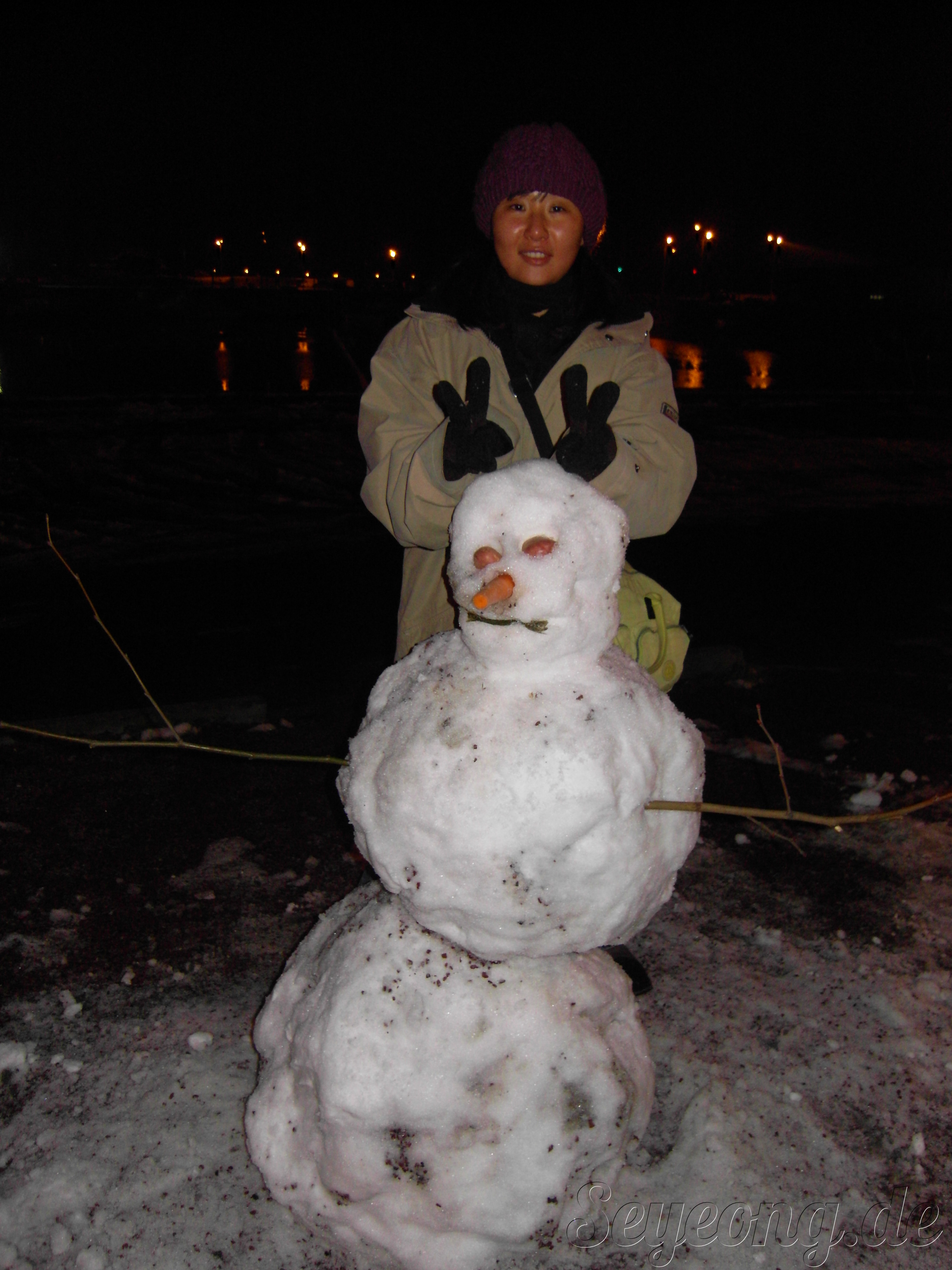 누가 만들어 놓은 눈사람에 굉장히 반가워 하였다.