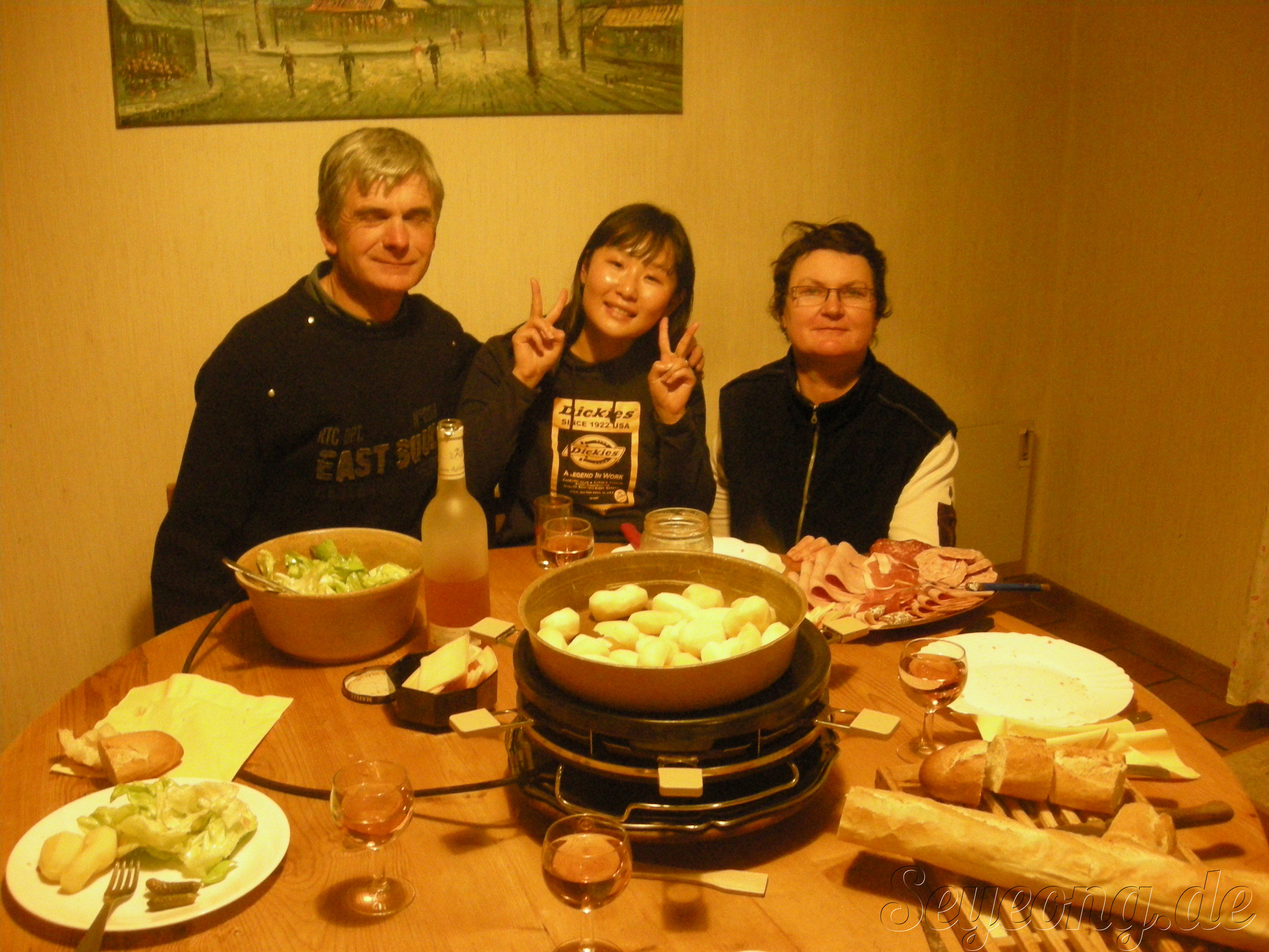 치즈를 기계에 넣어 녹이고 그것과 함께 햄과 감자를 먹는 것. 계속 권하는 부모님의 바람을 저버릴 수는 없는 일.