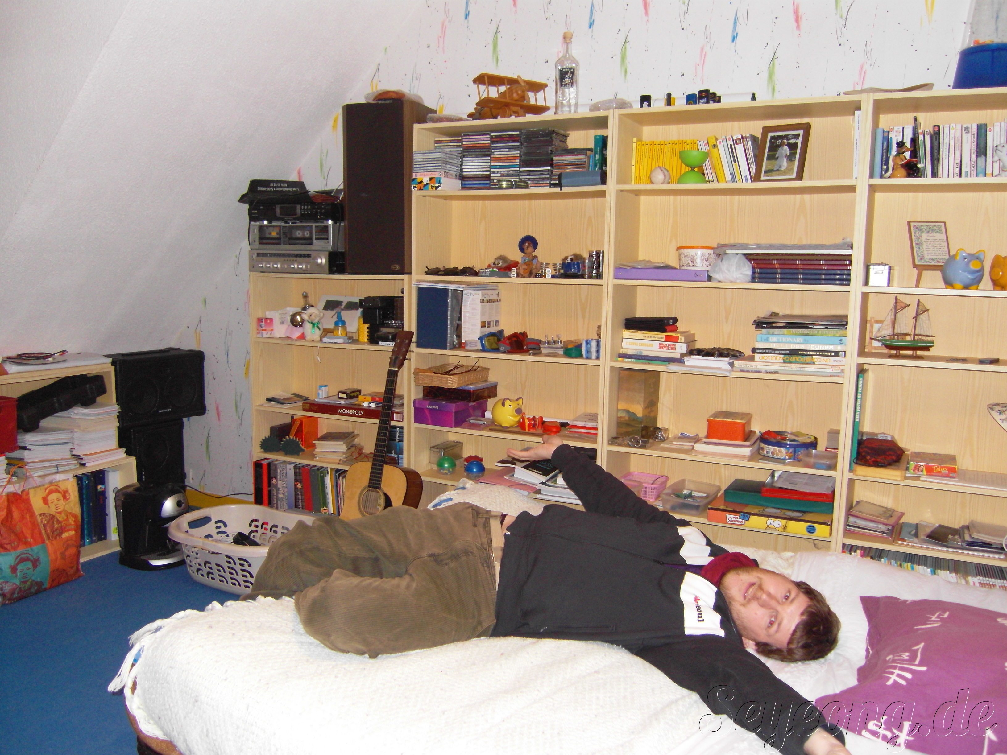 얼겁결에 나도 같이 삼촌 집 방문. 거실에 설치한 안락한 의자가 인상적이다.