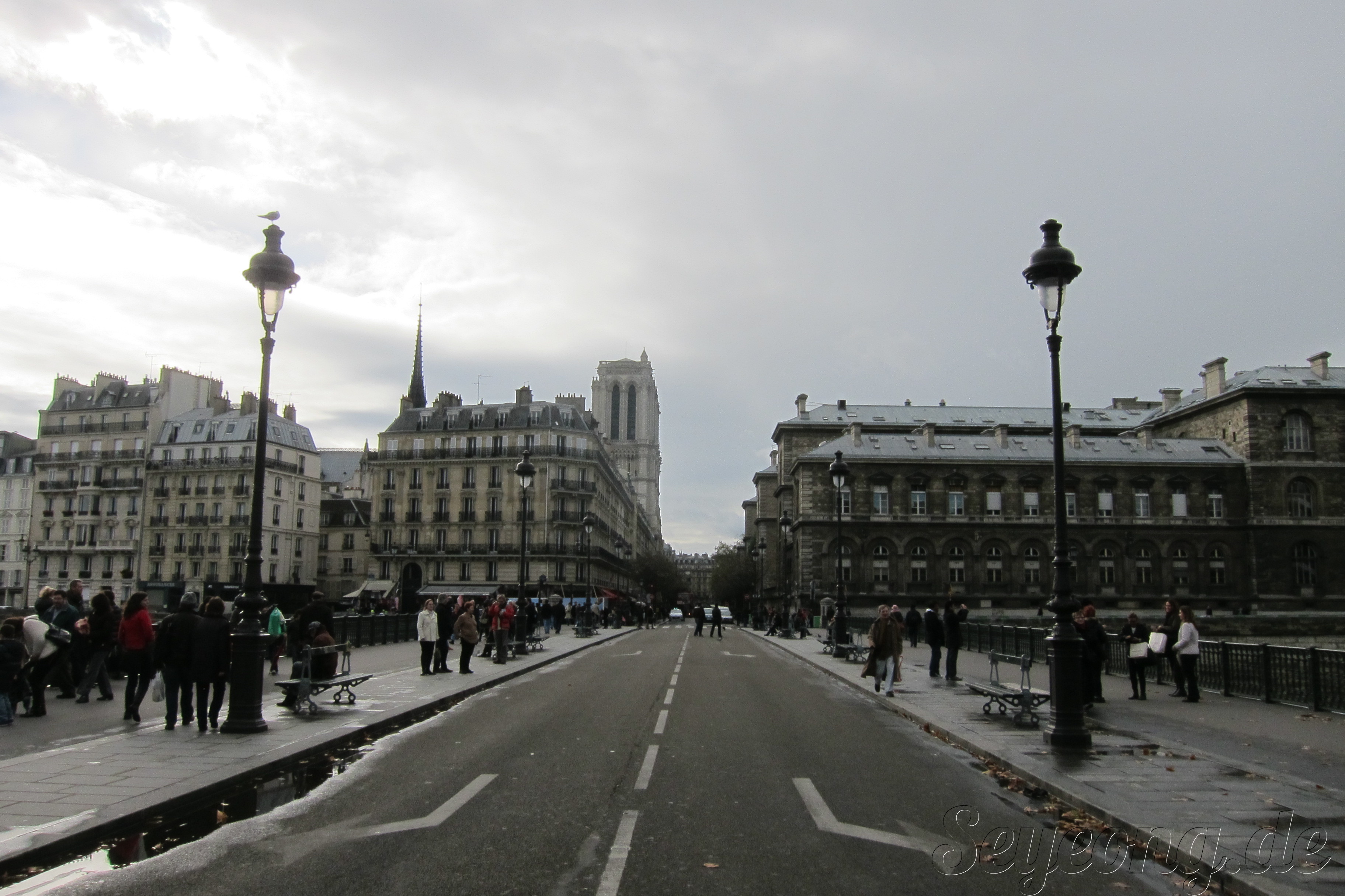 시청을 지나 노트르담에 가는 길. 세느강을 다리를 건너 간다.